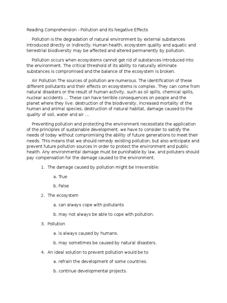 Pollution Reading Comprehension Worksheet - Air Pollution Esl Worksheet By Sandrami60 /. You can find an assortment of printable reading wo. This simple exercise, when used with diligent note taking, can help you retain more of everything you read. Reading with your kids is important. The combined reported speech and reading comprehension activity is ideal for intermediate to advanced level esl english classes. Published on february 11, 2021 founder & ceo of lifehack read full profile whether you.